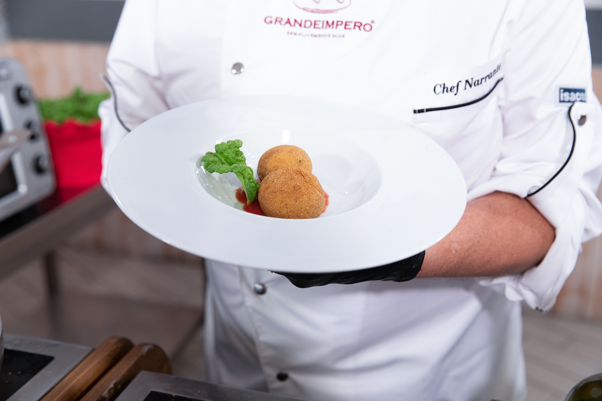5. Servire con un fondo di salsa di pomodoro preparata precedentemente.